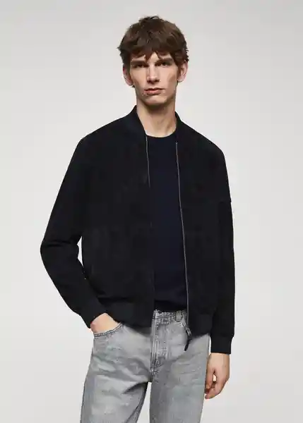 100% Piel de Ante Bolsillo de Cremallera en la Manga Bolsillo Interior de Cremallera Cierre de Cremallera en la Parte Delantera Cuello Redondo Diseño Bomber Dos Bolsillos de Ribete Laterales Forro Interior Manga Larga Con Puños Elásticos Regular Fit Terminaciones Elásticas en Canalé - 47034380_56.