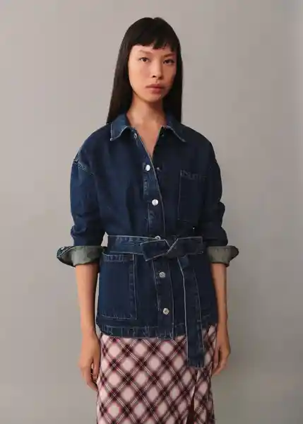 Cierre de Lazo en la Parte Delantera, Cierre Delantero Con Botones, Cuello Camisero, Diseño Medio, Diseño Recto, Manga Larga Con Puños Abotonados, Tejido de Algodón Estilo Tejano Vaquero, Tres Bolsillos en la Parte Delantera - 77085643_To.