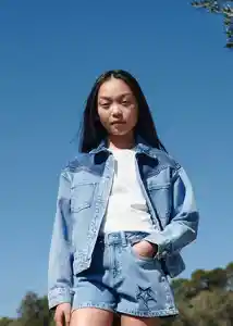 Cierre de Botones Cierre Delantero Cuello Camisero Diseño Recto Dos Bolsillos Delanteros Manga Larga Tejido de Algodón Estilo Tejano Vaquero - 67057116_Tm.