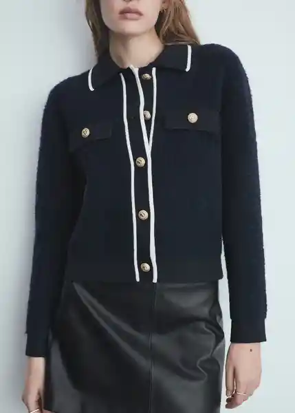 Cierre Delantero Con Botones, Cuello Camisero, Diseño Recto, Dos Bolsillos de Solapa en el Pecho, la Modelo Mide 178 cm y Lleva Una S, la Modelo Mide 182 cm y Lleva Una S, Manga Larga Con Puños Elásticos, Sin Forro Interior, Tejido de Punto Grueso, Terminación en Contraste - 77065641_56.