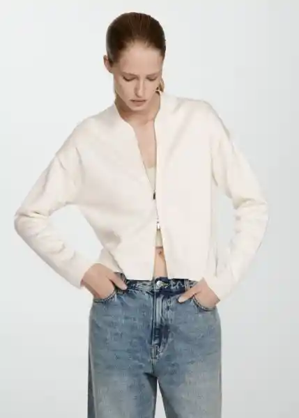 Cierre Delantero Con Cremallera Cuello Redondo Diseño Recto Manga Larga Tejido de Punto Fino - 67097124_05.