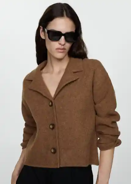 Cierre de Botones en la Parte Delantera, Cuello Pico Con Solapa, Diseño Recto, Manga Larga, Tejido de Punto Fino - 77036722_09.