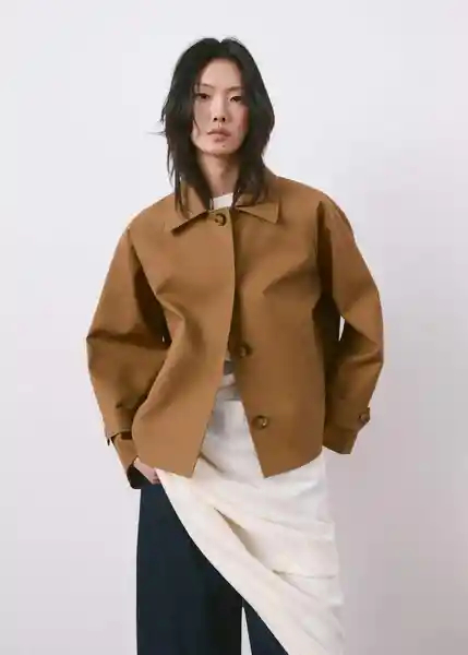 Cierre Delantero Con Botones Cuello Pico Con Solapa Diseño Corto Diseño Oversize Dos Bolsillos Laterales Forro Interior Manga Larga Con Puño de Tira Abotonada Solapas Con Muesca Tejido de Algodón - 27054774_09.