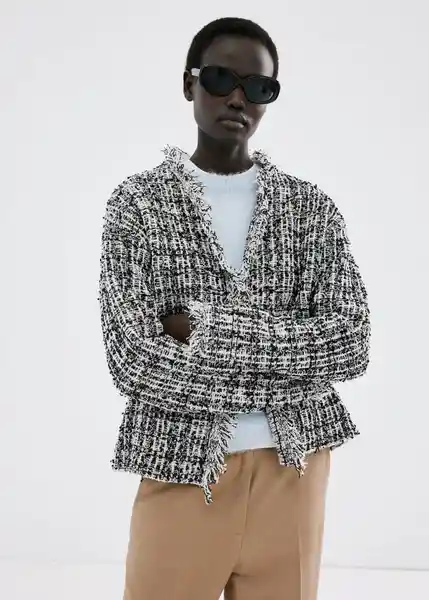 Cuello Pico Diseño Oversize Dos Bolsillos de Ribete Delanteros Manga Larga Sin Cierre Tejido de Punto Tejido Tweed - 27094097_99.