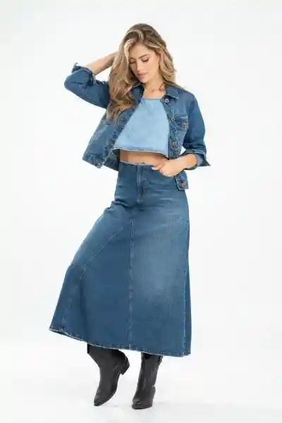 En Denim Rígido 100% Algodón Tono Oscuro Con Manualidad Cuello y Perilla de Botones Manga Larga Con Puño y Botón Bolsillo Parche Con Tapa en Frente.