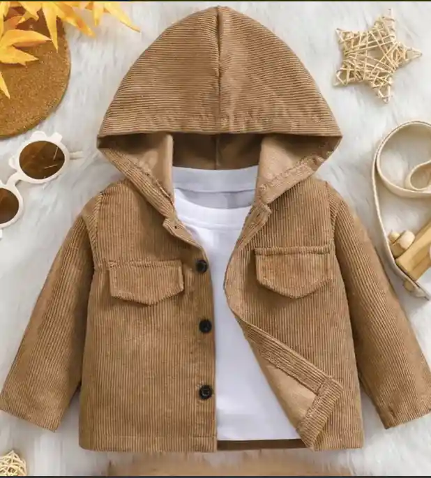 Chaqueta De Pana Camel Con Capota Para Niños 2-3 Años