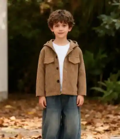 Chaqueta De Pana Camel Con Capota Para Niños 2-3 Años