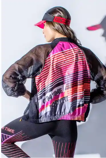 Chaqueta elaborada en tela utra liviana impermeable, con diseño lineas en la espalda, cierre frontal, bolsillos laterales, frente y mangas elaboradas en malla. TALLA ÚNICA