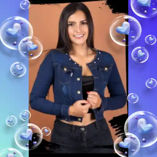 Chaqueta en jean azul oscuro cuello redondo con detalles de perlitas semitorero disponible S-M-L-XL