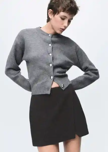 Cierre Delantero Con Botones Cuello Redondo Diseño Recto Manga Larga Tejido de Punto Grueso - 17096345_94.