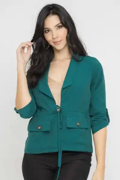 Rayón Fondo Entero Cuello Smoking Manga 3/4 Con Puño y Charretera Jareta Con Recogido en Cintura Bolsillo Parche Con Tapa en Frente.