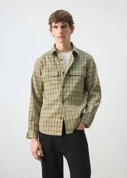 Bajo Redondeado Cierre de Botones Cuello Camisero Dos Bolsillos de Solapa en el Pecho Estampado Combinado de Cuadros Largo Standard Manga Larga Con Puños Abotonados Regular Fit - 27054423_36.