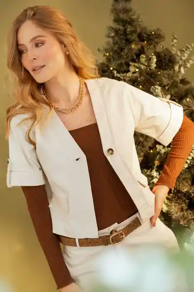 En Dril Pique Manga Corta Con Charretera y Guardapolvo Escote en V Con Botón de Ajuste Tapas Decorativas en Delantero Espalda Lisa Silueta Amplia.