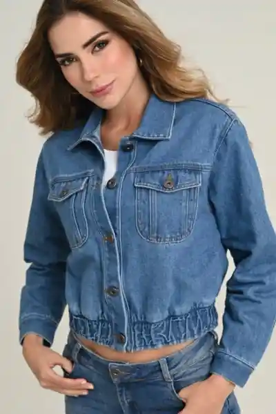 En Denim 100% Algodón Cuello y Perilla Completa de Botones Manga Larga Con Puño Bolsillos Con Tapa Pretina Con Elástico.