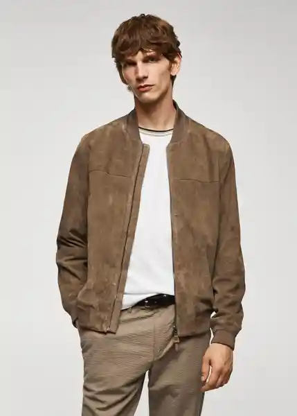 100% Piel de Ante Bolsillo Interior de Cremallera Cierre de Cremallera en la Parte Delantera Colección Básicos Cuello Bomber en Canalé Diseño Bomber Dos Bolsillos Delanteros de Ribetes Con Cierre de Cremallera el Color Azul es Exclusivo Online el Modelo Mide 190 cm y Lleva Una Talla M Forro Interior Manga Larga Con Puños Elásticos Regular Fit Terminaciones Elásticas en Canalé - 57032505_92.