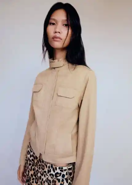 Cierre de Cremallera Invisible en la Parte Delantera, Cuello de Tira, Diseño Recto, Dos Bolsillos de Parche en el Pecho, Dos Bolsillos Laterales, Forro Interior, Manga Larga Con Puños Abotonados, Tejido de Algodón Estilo Tejano Vaquero - 77076348_08.