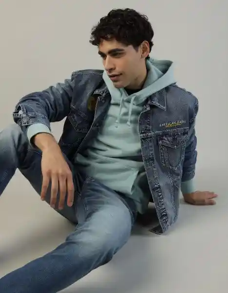 Denim Cuello Clásico Manga Larga Botones en el Frente Bolsillos Laterales.