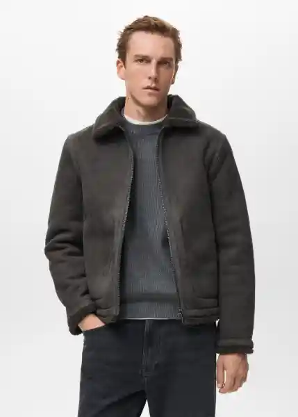 Bolsillo Interior Cierre Delantero Con Cremallera Cuello Camisero de Borreguito Dos Bolsillos de Ribete Laterales el Color Marrón Oscuro es Exclusivo Online el Modelo Mide 190 cm y Lleva Una Talla M Forro Interior Borreguito Silueta Recta Tejido Efecto Ante - 17027889_30.