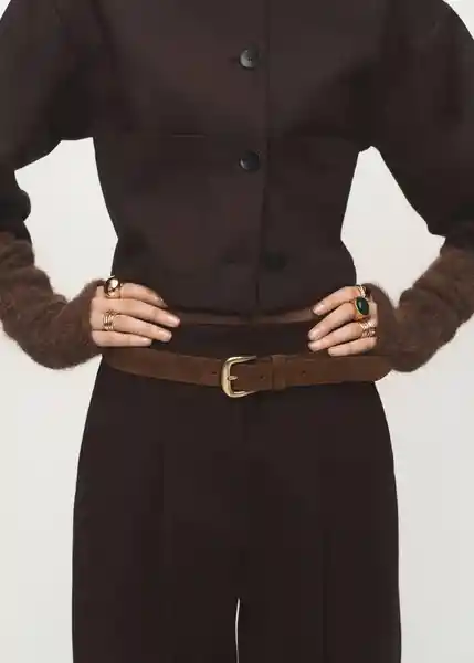 Cierre de Botones en la Parte Delantera Cuello Camisero Diseño Crop Diseño Recto Dos Bolsillos de Parche Laterales el Color Marrón es Exclusivo Online Forro Interior Manga Larga Tejido Mezcla de Algodón Total Look - 17044119_32.