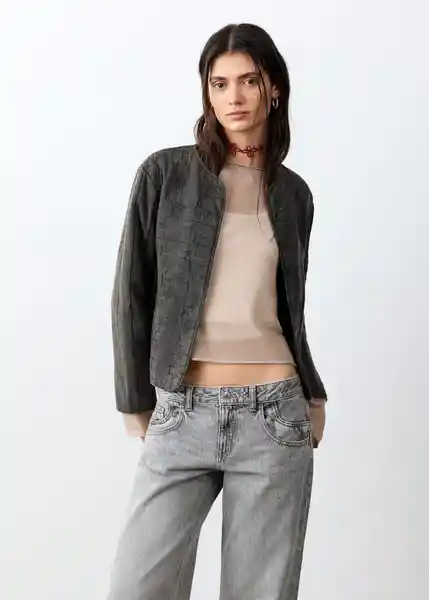Bolsillos Laterales Cuello Pico Detalle de Abalorios Manga Larga Sin Cierre Tejido 100% Algodón Tejido Acolchado - 27044055_95.