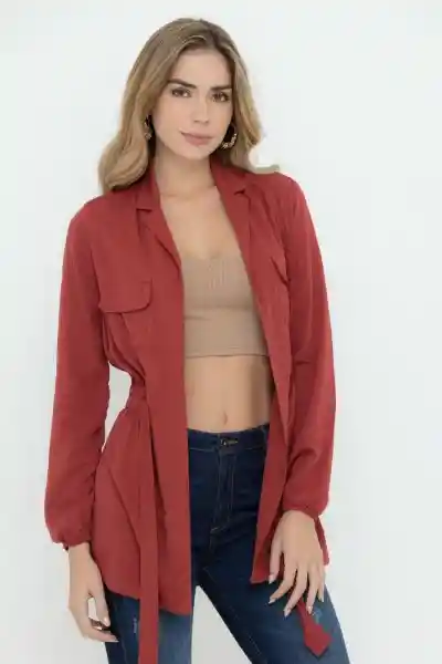 Chalís Fondo Entero Abierta Cuello de Solapa Resortada en Cintura Cinturón en Tela Principal Que Anuda en Frente Manga Larga Con Elástico en Puño.