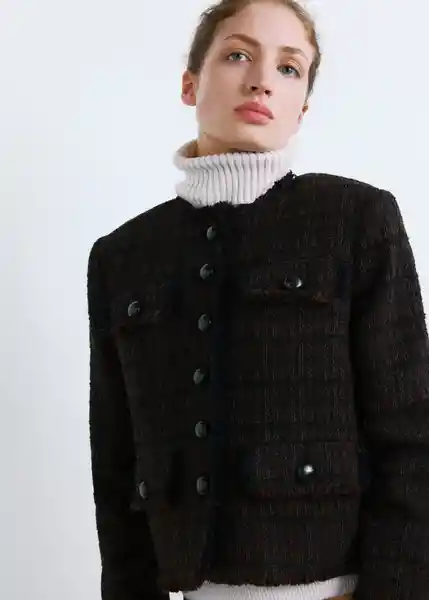 Cierre de Botones en la Parte Delantera Cuatro Bolsillos de Solapa en la Parte Delantera Cuello Redondo Diseño Recto Forro Interior Manga Larga Tejido Tweed Terminaciones Deshilachadas - 27021325_32.