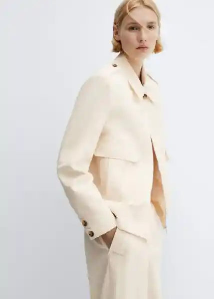 Bajo Con Goma Elástica Bolsillos Laterales Cierre de Botones en la Parte Delantera Cierre de Cremallera en la Parte Delantera Cuello Camisero Diseño Recto Dos Bolsillos de Parche en la Parte Delantera Manga Larga Tejido Mezcla de Algodón y Lino - 67025760_02.