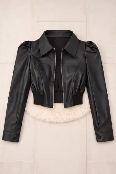Chaqueta color negra de cuero sintetico ideal para toda ocasión,talla unica