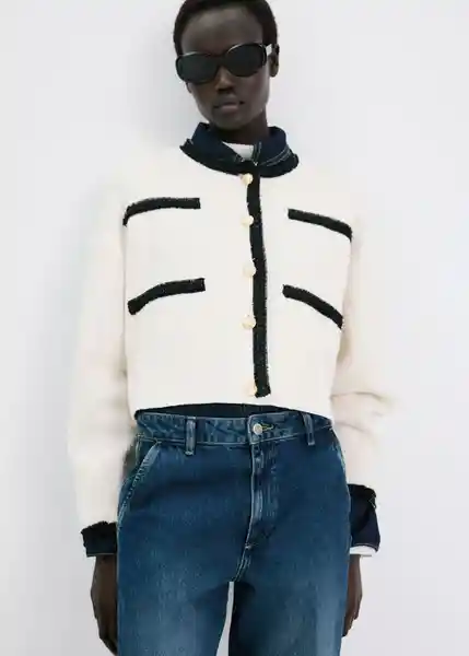 Bolsillos de Ribete Botones Efecto Joya Cierre Delantero Con Botones Cuello Redondo Diseño Recto Exclusivo Online Manga Larga Tejido de Punto Medio - 27064099_05.