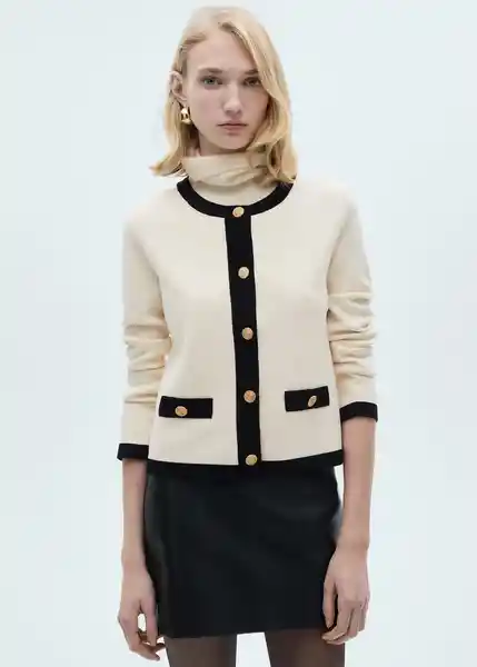 Botones Efecto Joya Cierre Delantero Con Botones Cuello Redondo Diseño Estándar Diseño Recto Dos Bolsillos de Ribete Laterales Manga Larga Tejido de Punto Medio Tejido Ligero Terminaciones en Contraste - 87060651_05.