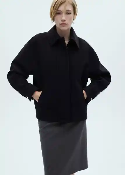 Cierre de Cremallera en la Parte Delantera, Cuello Camisero, Diseño Oversize, Dos Bolsillos Laterales, Forro Interior, Manga Larga Con Puños Abotonados, Tejido Mezcla de Lana - 77096719_56.