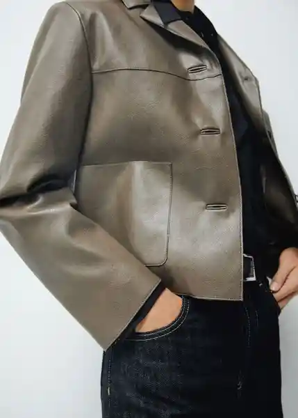 Cierre Delantero Con Botones Cuello Pico Con Solapa Diseño Recto Disponible Plus Dos Bolsillos de Parche Frontales Efecto Piel Exclusivo Online Forro Interior Manga Larga Material Pu Silueta Recto Solapas Con Muesca - 27074780_36.