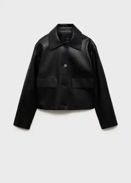 Cierre de Botones en la Parte Delantera Cuello de Solapa Diseño Corto Diseño Recto Dos Bolsillos de Parche en la Parte Delantera Efecto Piel Manga Larga - 87084073_99.