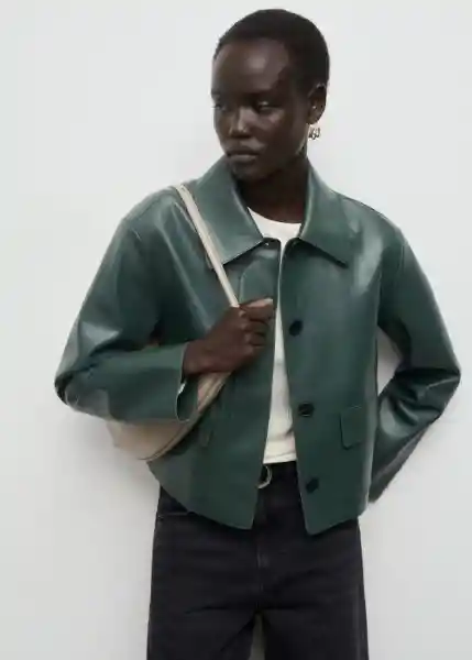 Cierre de Botones en la Parte Delantera Cuello de Solapa Diseño Corto Diseño Recto Disponible Plus Dos Bolsillos de Parche y Solapa en la Parte Delantera Efecto Piel Forro Interior Manga Larga - 17094433_43.