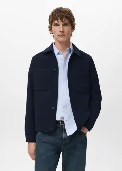 Cierre Delantero Con Botones Cuello Camisero Dos Bolsillos de Parche en el Pecho Manga Larga Con Puños Abotonados Regular Fit Tejido Mezcla Con Lana - 27051229_56.