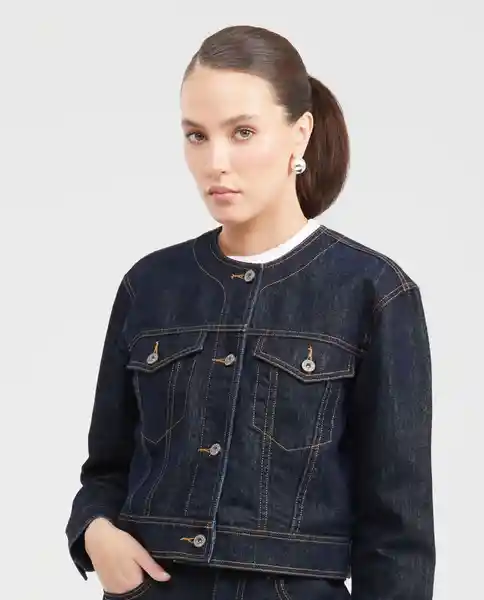 Para Mujer en Denim, Tipo Trucker, Straight Fit (Silueta Recta). Color Azul, Tono Claro.Cuello Redondo, Perilla Completa Con Botones Metálicos, Bolsillos de Parche Con Tapa en el Frente Superior y Garra de Cuero en la Pretina Posterior.Elaborada en Denim Comfort, (20% a 35% de Elongación) Con Hilos de Lurex (Metalizados), Que le Proporcionan a la Tela un Brillo Particular.Lavado en Agua Que Conserva la Apariencia Original Del Denim, Sin Alterar su Color ni Textura.Peso: 312 g. Ean - 421G001AZU193924 PLU- 1111133082456.