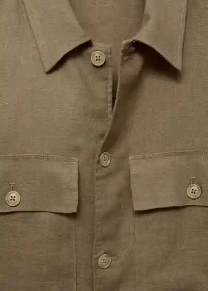 Bajo Recto Con Aberturas Laterales, Cierre Delantero Con Botones, Cordón Interior Ajustable a la Cintura, Cuello Camisero, Dos Bolsillos de Ribete Delanteros, Dos Bolsillos de Solapa y Parche en la Parte Delantera, el Modelo Mide 187 cm y Lleva Una Talla M, Manga Larga Con Puños Abotonados, Tejido 100% de Lino - 77010568_37.