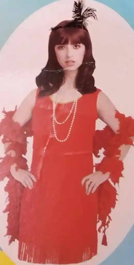 Vestido de mujer de Charleston con flequillos color rojo. Incluye.collar y cintillo Ref. HCO225