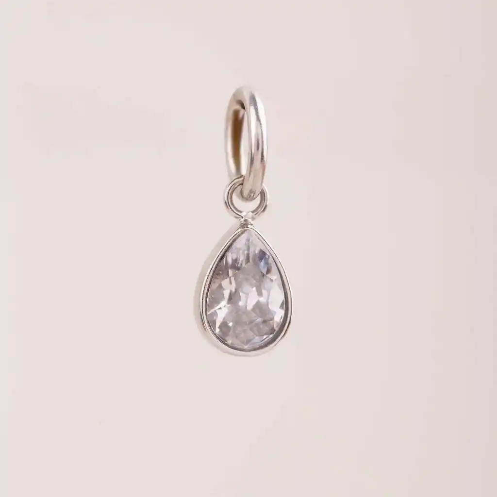 El Charm Selene es una pieza diseñada para enamorar. Su diseño presenta un cristal zirconia cubica en forma de gota, facetada. Este detalle resalta su brillo con suavidad, evocando romanticismo y sofisticación en cada ángulo. Gracias a su aro superior, el Charm Selene se engancha con facilidad en pulseras, collares, tobilleras o incluso aretes tipo charm. Puedes llevarlo solo como protagonista o integrarlo en combinaciones para expresar tu estilo de forma única. Fabricado en acero quirúrgico, hipoalergénico, resistente al agua y pulido a mano. Dimensiones Ancho: 5 mm Largo: 7 mm Diámetro Aro superior: 6 mm