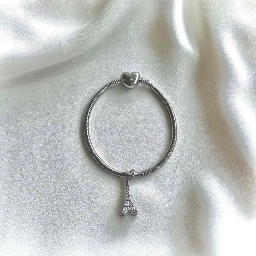 Charm Torre Eiffel + Pulsera Plateado Talla 18 Cm