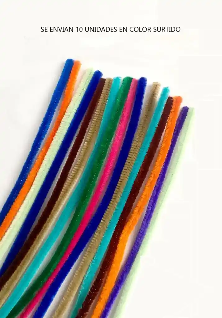 Se envían 10 Chelines / Limpiapipas gamuzados en colores surtidos, de acuerdo a disponibilidad de colores. Los limpiapipas de colores para manualidades son una herramienta esencial para cualquier proyecto creativo. Estos versátiles materiales permiten la creación de una amplia variedad de objetos gracias a la rigidez de su alambre interior y sus colores vibrantes. Son ideales para manualidades, proyectos escolares, floristería y más.