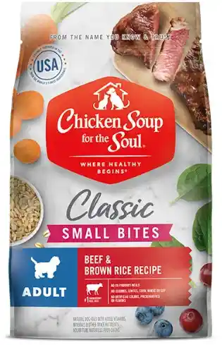 Especialmente formulada para razas pequeñas o perros adultos con dientes sensibles, esta receta ofrece una croqueta más pequeña, fácil de masticar y de gran sabor, Ideal para mantener su bienestar, digestión y vitalidad día a día. Beneficios principales: Carne de res real como primer ingrediente proteína magra para músculos fuertes y energía constante. Arroz integral y granos enteros fibra natural que favorece una digestión suave y saludable. Croqueta "Small Bites" tamaño ideal para bocas pequeñas o perros con sensibilidad dental. Sin conservantes, colorantes ni sabores artificiales nutrición limpia, segura y NATURAL. Superalimentos (zanahoria, manzana, espinaca, arándanos, tomate) antioxidantes naturales que fortalecen su sistema inmunológico. Prebióticos y minerales esenciales equilibrio intestinal y bienestar general.