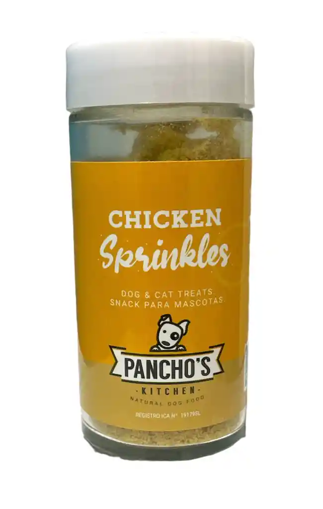 Chicken Sprinkle! Esta nueva presentación de nuestros jerkys le encantará a tu mascota. Dale más sabor a las comidas, estimula el apetito mientras disfrutan de 100% proteína.