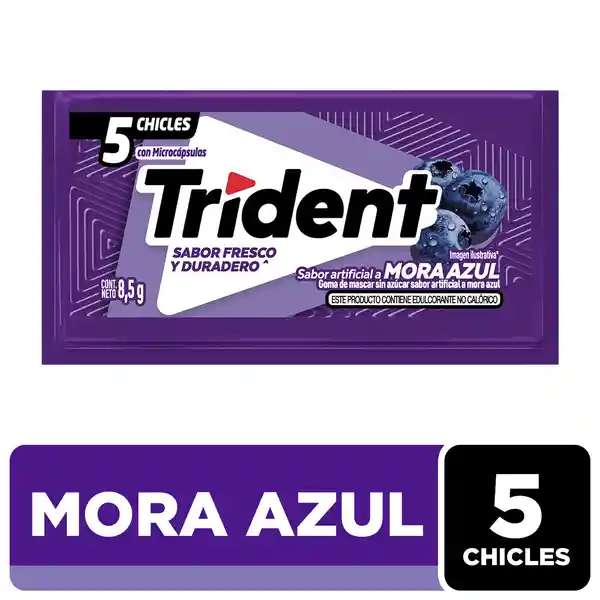 Chicles Trident sin Azúcar sabor artificial a Mora en formato de 5 unidades.