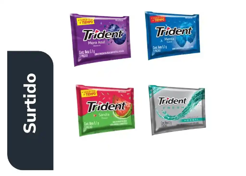 Chicle Trident Sabores Surtidos – Paquete x3 Unidades 🍓🍉🌿 Disfruta de una mezcla refrescante y deliciosa con el Chicle Trident Sabores Surtidos, que combina irresistibles sabores frutales y de menta para que cada momento sea diferente. Su fórmula sin azúcar protege tu sonrisa mientras ofrece un sabor intenso y duradero. Perfecto para llevar contigo y disfrutar en cualquier lugar. ✅ Características principales: Presentación: paquete con 3 chicles individuales. Sabores variados: combinación de frutas y menta (puede incluir fresa, sandía, hierbabuena, menta, entre otros). Sin azúcar: ayuda al cuidado dental. Sabor prolongado y refrescante en cada masticada. Práctico y portátil: ideal para llevar en bolsillo, cartera o mochila. Marca confiable: Trident, líder mundial en frescura y calidad. Perfectos para después de las comidas, en reuniones o para disfrutar mientras trabajas o viajas, los Chicles Trident Sabores Surtidos x3 son la forma más práctica de tener frescura y variedad a tu alcance. 💡 Tres oportunidades para refrescar tu día.