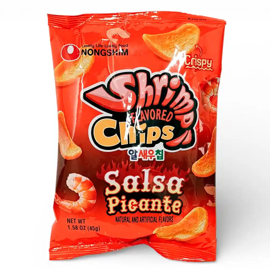 Super crujiente snack de 45 g, Combina el sabor del camarón con picante ( nivel medio) y deleita tu paladar.
