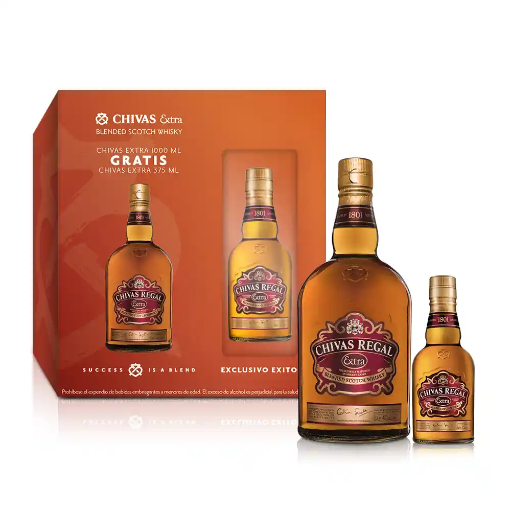 Chivas Whisky Extra 1000 mL + Chivas Whisky Extra 375 mL El exceso de alcohol es perjudicial para la salud. Ley 30 de 1986. Prohíbase el expendio de bebidas embriagantes a menores de edad. Ley 124 1994
