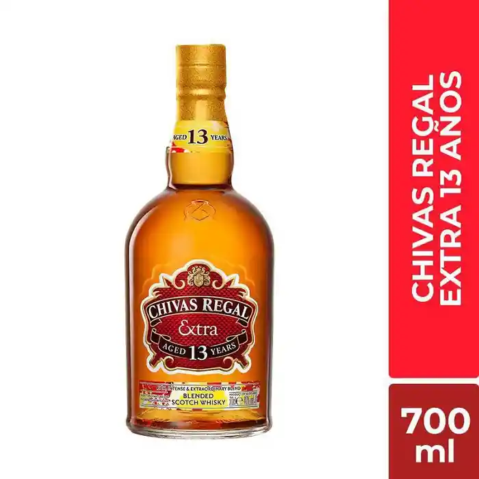 Presentación: Botella 700 Ml. Porcentaje De Alcohol: 40% Chivas Regal Extra 13 Sherry, Después De Ser Selectivamente Madurado Durante 13 Años En Barricas De Jerez Oloroso Aporta Un Sabor Extraordinario. El Resultado Final Es Intenso Y De Notas Dulces Gracias A Que Las Barricas De Jerez Extraen Los Sabores Íntegros De Nuestro Whisky. Notas De Cata: Una Rica Combinación De Peras Maduras En Almíbar Y Caramelo De Vainilla Infusionado Con Dulces De Canela Y Almendras Crujientes. 1 Botella Por 700 Ml. Prohibido El Expendio De Bebidas Embriagantes A Menores De Edad Ley 124 De 1994. Ley 30 De 1986.