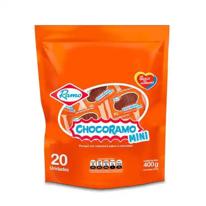 Disfruta de nuestros chocorramos mini, los únicos ponqués con cobertura de chocolate. Perfectos para calmar el antojo de cada día de la semana. Presentación 20 U 400G