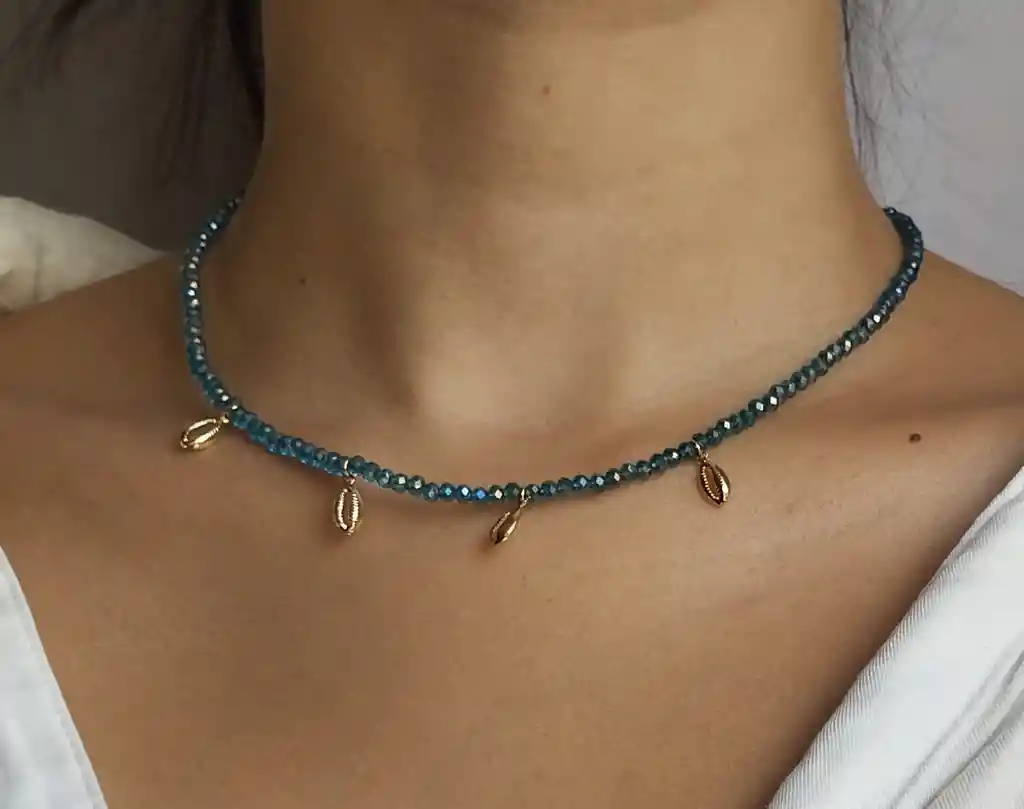 Choker elaborado a mano en murano con dije de conchita en covergold.